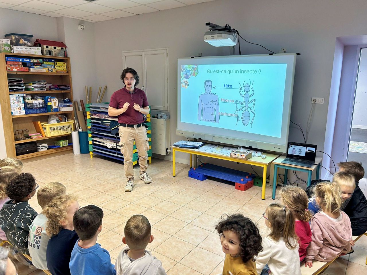 La « ferme aux insectes » est intervenue dans chaque classe tout au long de la journée de jeudi. Les enfants ont pu observer une ruche de bourdons, insectes indispensables pour la pollinisation. Les élèves ont compris le rôle des insectes protecteurs, tels que les punaises vertes et les micro-guêpes, qui protègent les cultures contre les insectes nuisibles tels que les mouches blanches. Les observations étaient passionnantes.